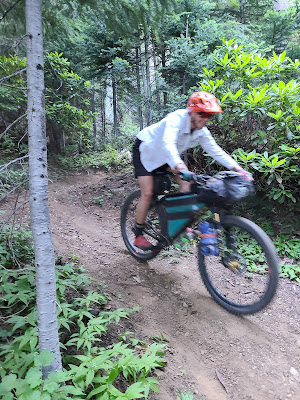 Throughout the day we saw a minimum of 13 people bikepacking the opposite direction. It was so fun to see others out suffering and reveling in the experience as we were. Folks we met (real and imagined names) include Mike, James & Mystery Man, Max Bonkers, Conan, Guy Chasing Conan, Girl on Yeti Hating Life, Gramps, and Scuba Steve.